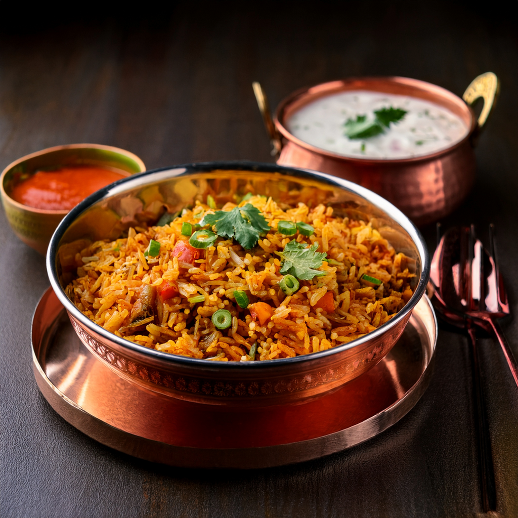 Experience a burst of flavor with our fiery Peri Peri fried rice, packed with vibrant vegetables and a bold kick of heat.